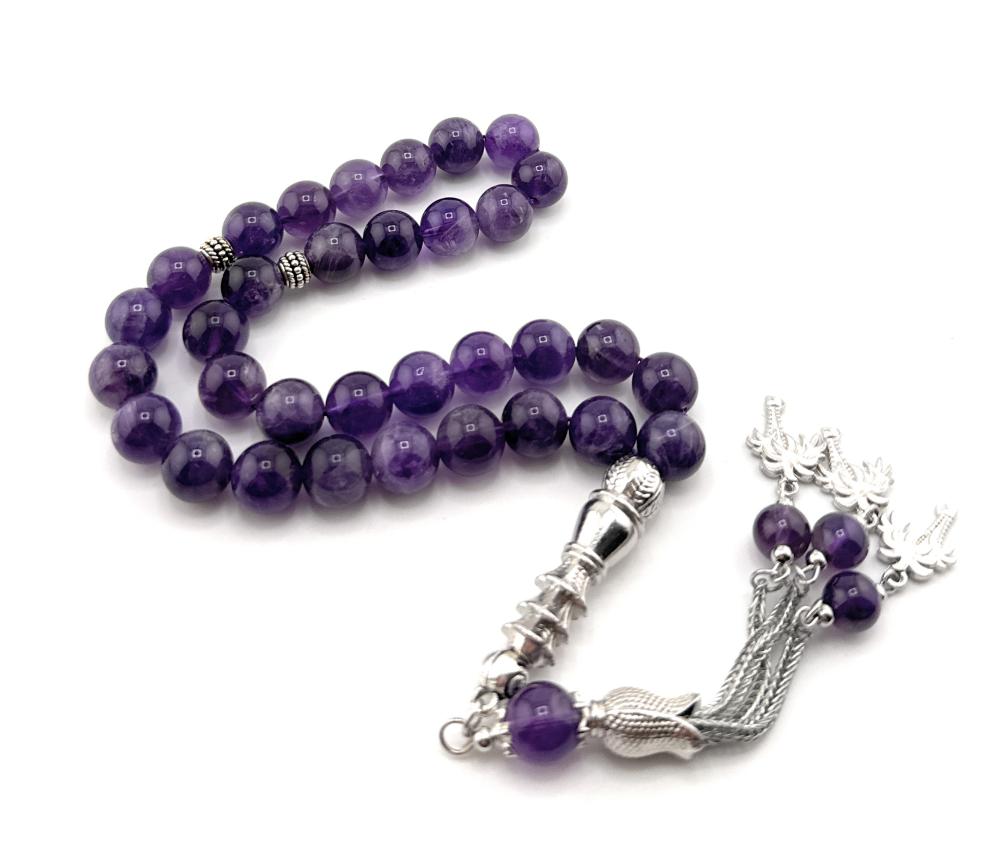 • سبحة حجر الأميثيست إطلالة ملكية بنقاء أرجواني آسر
