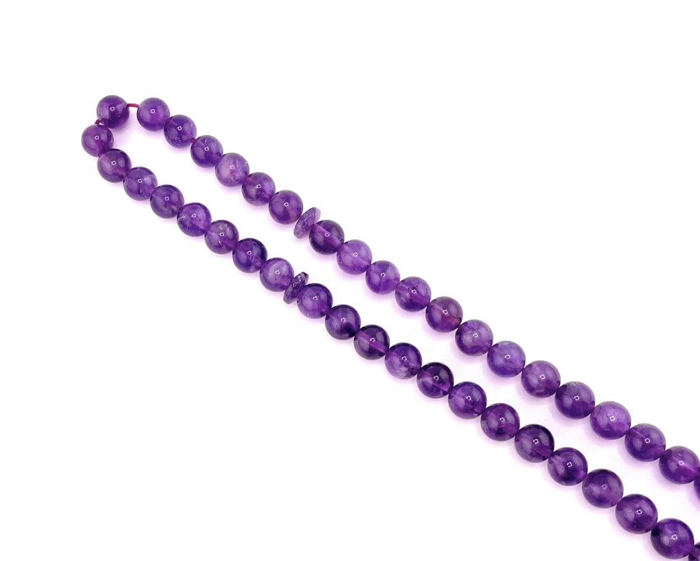 • اللون البنفسجي لحجر الأماثيست يعكس الضوء بشكل جميل ويظهر تدرجات مختلفة من البنفسجي، مما يجعل كل خرزة فريدة في مظهرها.