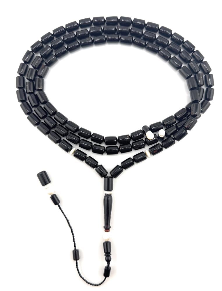 - سبحة فاخرة مصنوعة من المرجان الأسود الطبيعي 100% من أعماق البحر الأحمر، مطعّمة بعاج الفيل الفاخر